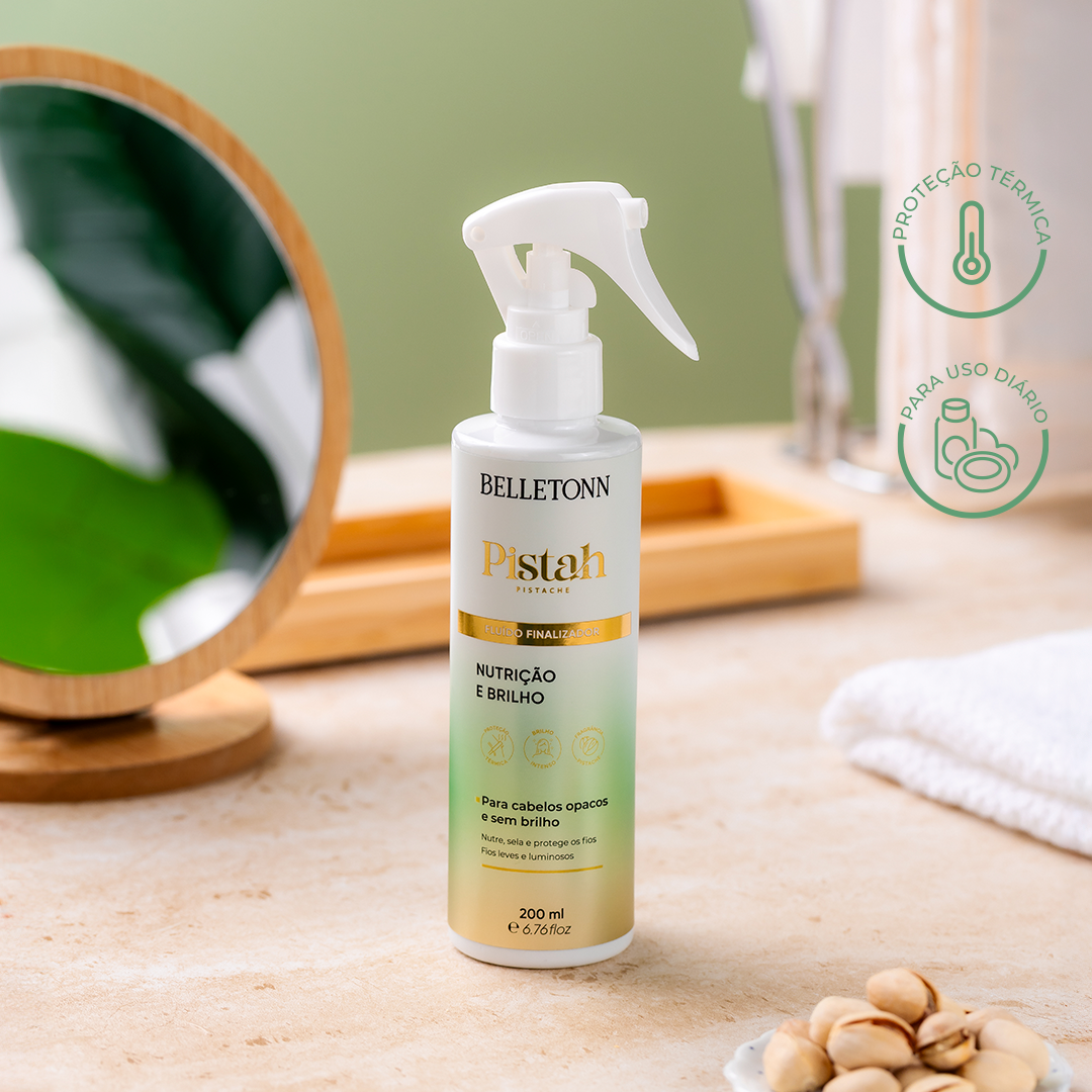• Spray Pistache: ideal para nutrição, brilho e controle de ressecamento.