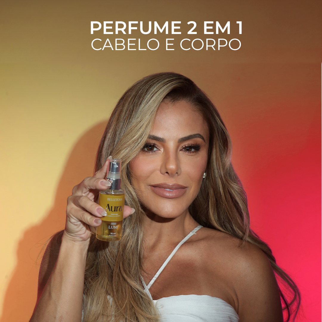 E pra completar, o perfume Aura Lumi acompanha o kit com sua fragrância sofisticada e envolvente para cabelo e corpo.